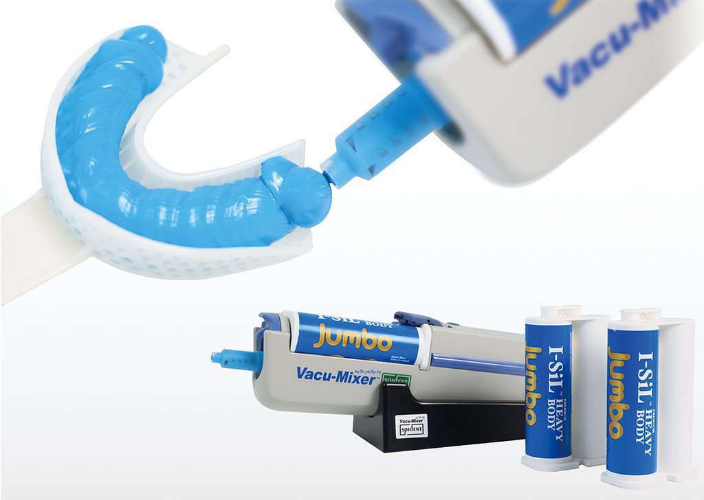 由1:1混合的加成型重體硅橡膠印材料搭配Vacu-Mixer無線自動混合裝置組成,印材料具有優越的性能,可搭配常見品牌輕體實現臨床各類印模。